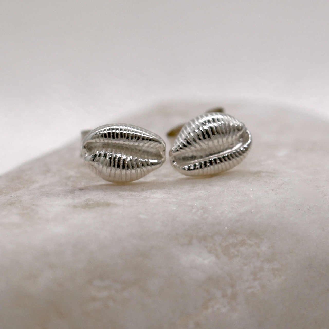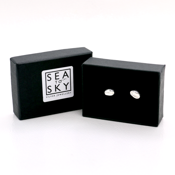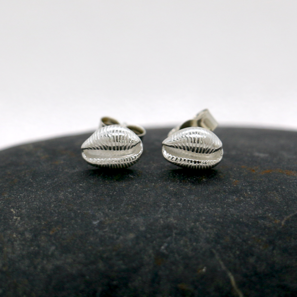 Hand made fine silver cowrie shell studs, a tiny piece of the sea to carry with you.