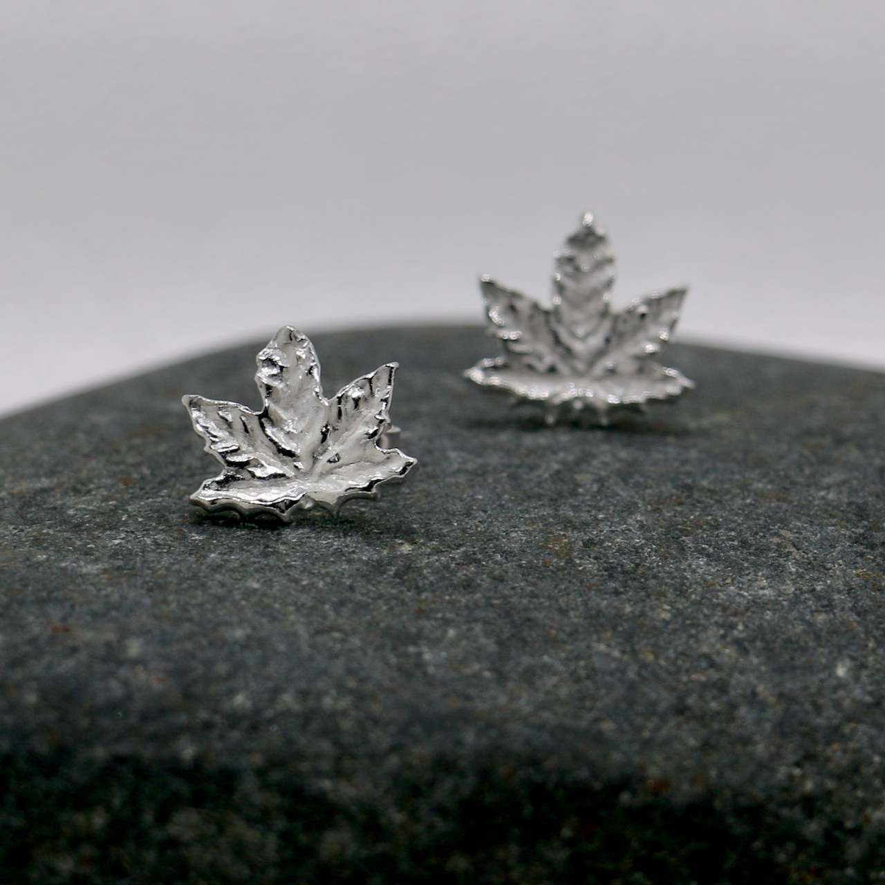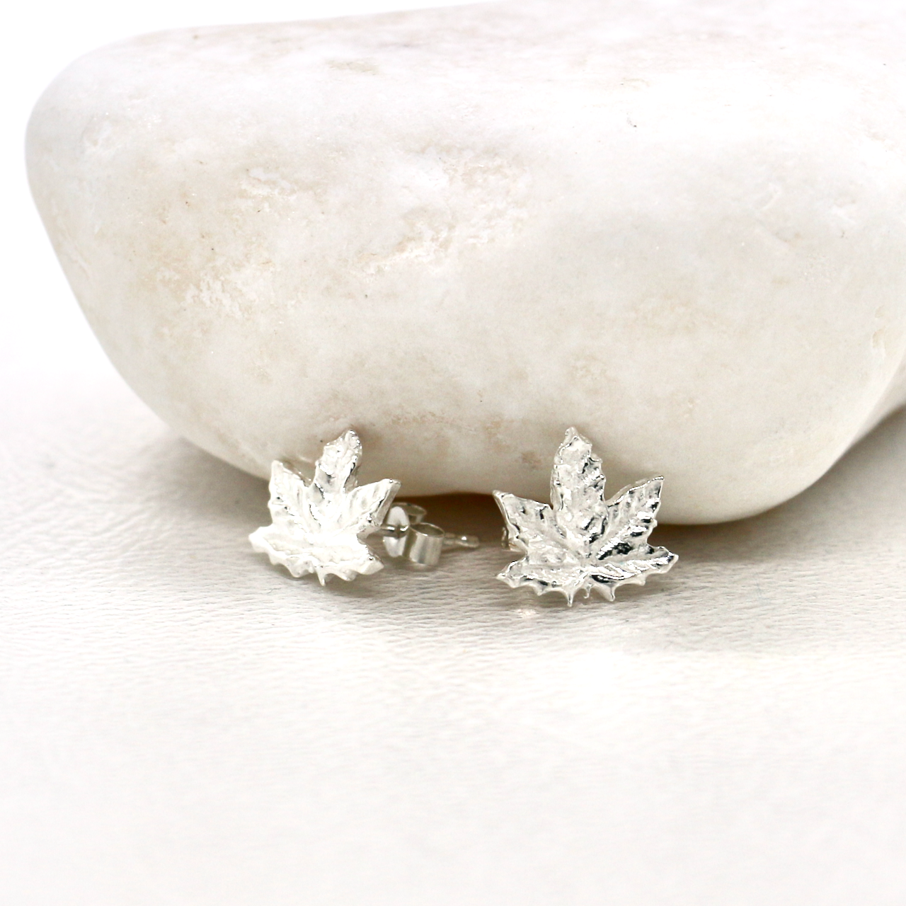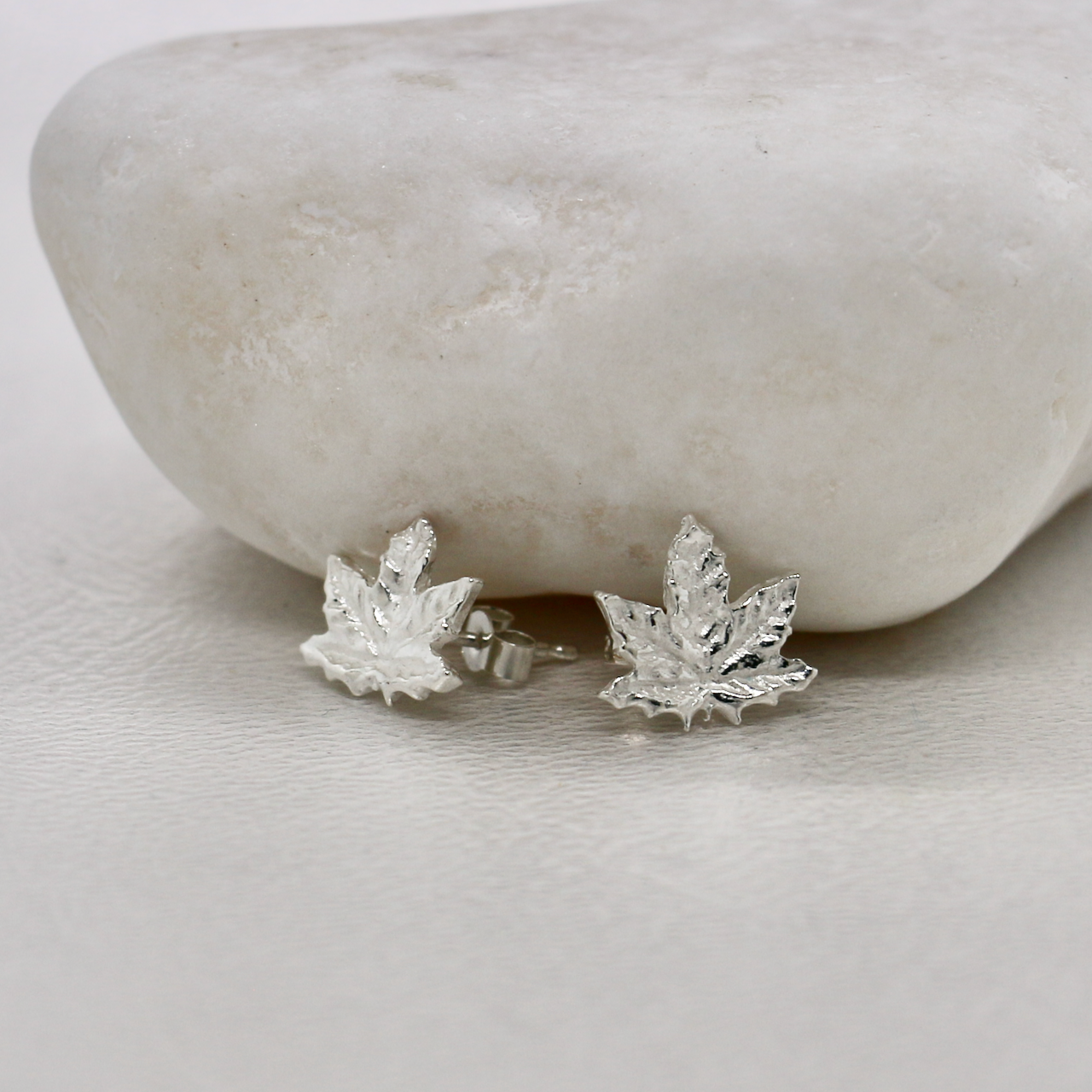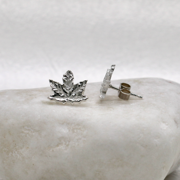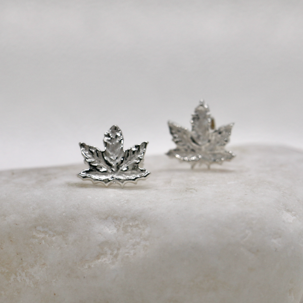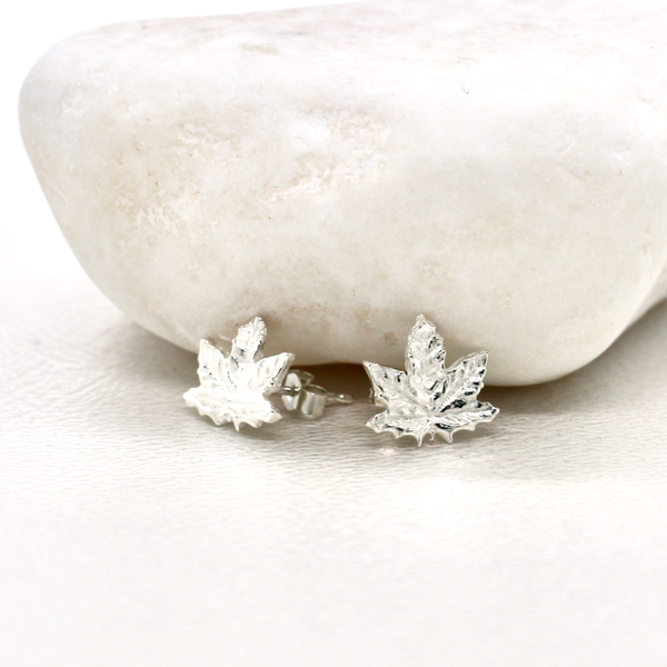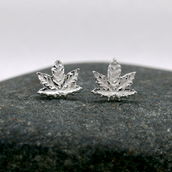 Handmade Fine Silver Maple Leaf Stud Earrings